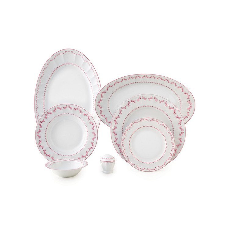 اقلام سرویس: ظرف سالاد , دیس , بشقاب غذاخوری , بشقاب خورشخوری , پیشدستی , نمکپاش و فلفلپاش , پیاله
