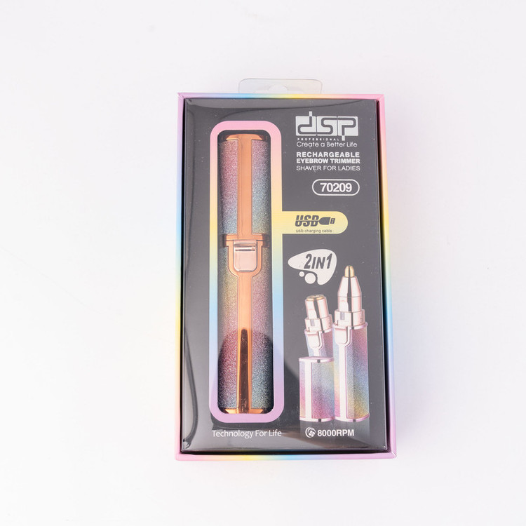 اگر به دنبال یک موزن کارآمد و کاربردی برای اصلاح موهای زائد صورت و ابرو هستید، موزن ابرو و صورت دی اس پی مدل 70209 گزینهای مناسب برای شما است. این محصول مخصوص بانوان طراحی شده است و با توان مصرفی 2 وات و دور موتور 8000 دور بر دقیقه، کارکرد بسیار مناسبی دارد. باتری قابل شارژ این موزن 600 میلی آمپر ساعتی است و با یک بار شارژ کامل، میتوانید از آن به مدت 70دقیقه استفاده کنید. زمان لازم برای شارژ شدن این موزن 6 ساعت است. این موزن دارای دو سری متفاوت برای اصلاح موی صورت و ابرو است که میتوانید بر اساس نیاز خود آنها را تعویض کنید. همچنین این محصول دارای برس تمیزکننده و کابل شارژر است که کار با آن را راحتتر میکند. موزن ابرو و صورت دی اس پی مدل 70209 یک انتخاب هوشمندانه برای اصلاح بی دردسر موی صورت و ابروی شماست.