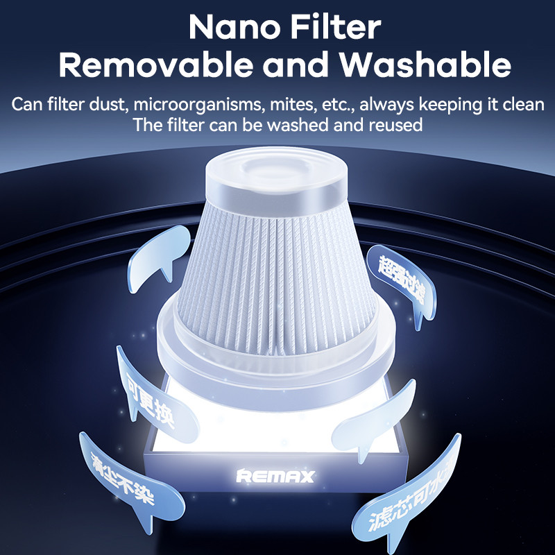 نظافت خودرو حتی منزل و محل کار خود را به جارو شارژی چند کاره ریمکس مدل XC-2 بسپارید. جارو شارژی ریمکس مدل XC-2 سری 3 در 1 ،با کارایی بالا در سناریوهای مختلف مانند استفاده در خانه ، ماشین و محل کار قابل استفاده است.این مدل ارتقا یافته و چند منظوره دارای قدرت بیش از 6000 پاسکال است و می توان از آن برای تمیز کردن آسان گرد و غبار، زباله ها و کثیفی ها،مو ،حیوانات خانگی و غیره استفاده کرد. و کل ماشین ویا محل مورد نظر بطور موثر و کمترین زمان ممکن تمیز و تر وتازه خواهد شد.محفظه گردو غبار را میتوان بایک بار چرخش براحتی آزاد کرده و فیلتر را از گرد و غبار خالی کرد.فیلترقابل شستشو و ضد گرد و غبار است و میتوان مکررا از آن استفاده نمود که آن را دوستدار محیط زیست می کند.موتور آن از مس خالص بوده که دوام و قابلیت اطمینان به آنرا برای استفاده طولانی مدت تضمین می کند.دارای دو سری برای نظافت و یک سری مخصوص برای وکیوم کیسه های لباس و یک سری دمنده می باشد. با اتصال سری مخصوص دمنده به پشت دستگاه میتوان با فشار هوا برای نظافت درز و شکافهای غیر قابل دسترس و نقاط کور از آن استفاده نمود همچنین از این قابلیت حتی برای باد کردن بادکنک و بالون و وسایل بادی نیز استفاده نمود.این محصول شارژی بوده و با کابل شارژ نوع Type-C که بهمراه محصول می باشد میتوان آنرا بسرعت شارژ نمود.برای روشن نمودن دستگاه یک بار فشار دهید و برای تنظیم سرعت دکمه را نگه دارید تا سطح قدرت را تنظیم کنید. برای خاموش شدن نیز فشار دهید و نگه دارید.جارو شارژی ریمکس مدل XC-2 ، مجهز به یک چراغ لیزریک نوری بوده که با ایجاد نور مخصوص پس زمینه داخلی، موجب آشکار سازی گردوغبارهای ریز که با چشم غیرمسلح قابل مشاهده نیست شده که در نتیجه باعث تمیزی و نظافت حداکثری میگردد.