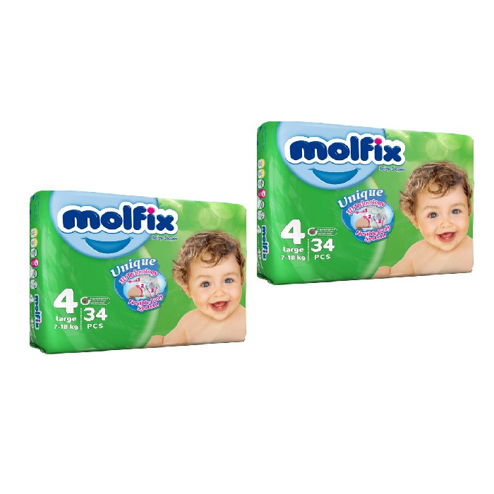 پوشک بچه مولفیکس سایز 4 کد PK02434 بسته 34 عددی مجموعه 2 عددی
