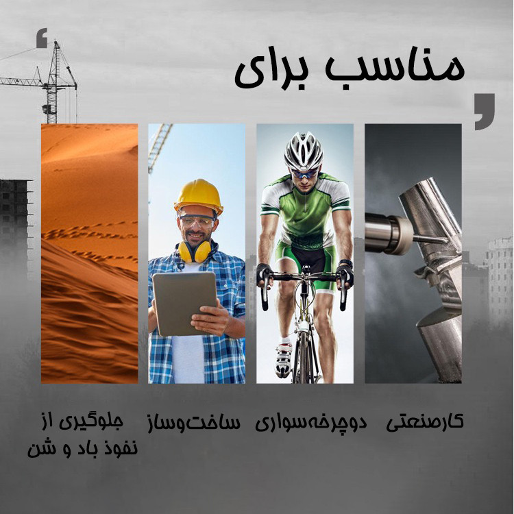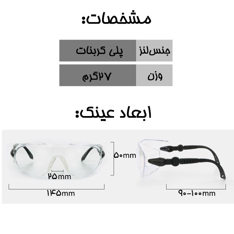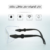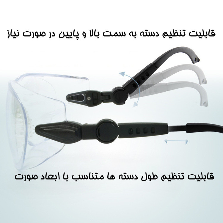سایر توضیحاتفریم و لنز شفاف، دسته مشکی قابلیت تغییر زاویه دسته قابلیت تغییر طول دسته