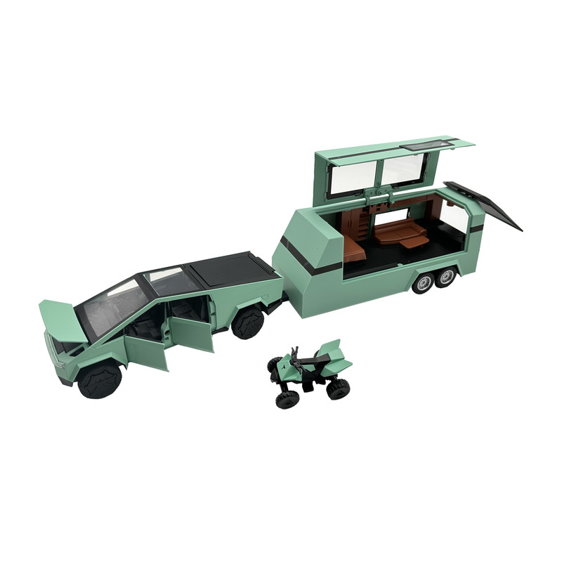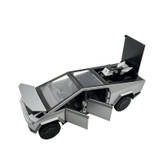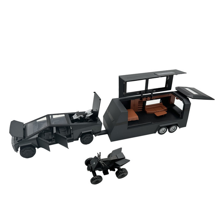 اسباب بازی ماشین تسلا مسافرتی از جنس فلز بوده و به صورت عقبکش کار می کند. ماشین فلزی تسلا دارای باطری سکه ای برای روشن شدن چراغ ها و صدای استارت ماشین بوده و همچنین دارای درب های مختلف با قابلیت باز و بسته شدن است. همچنین داخل کابین این ماشین دارای مبلمان و... می باشد. کابین این ماشین فلزی قابلیت جدا شدن از ماشین می باشد. طول ماشین به همراه کابین حدود 38 سانتی متر بوده و همچنین دارای یک موتور 4 چرخ جدا می باشد.