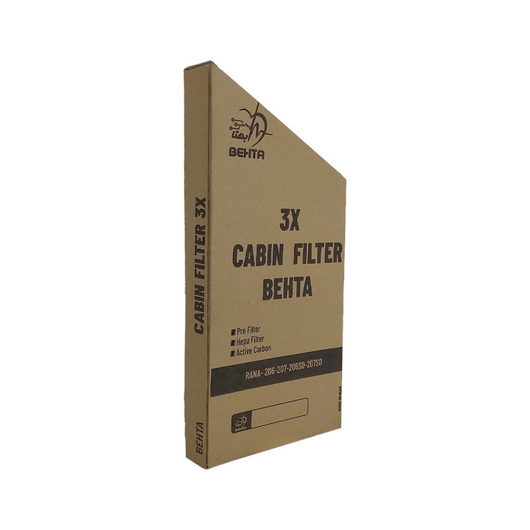 فیلتر سه گانه هپا، کربن اکتیو و پیش فیلتر برند بهتا تنها راه حل تضمینی رفع آلودگیهای هوا داخل کابین خودرو است. فیلترهای معمولی موجود در بازار توانایی تصفیه هوا ندارند و فقط می توانند ذرات درشت را فیلتر کنند درحالی که فیلتر سه گانه بهتا قابلیت حذف 99.97 درصد آلودگی ها حتی ذرات بسیار ریز را دارد. فناوری به کار رفته در تولید این فیلتر دقیقا همان فناوری فیلترهای دستگاه تصفیه هوا است لذا اطمینان خاطر از ایجاد هوای پاک داخل خودرو برای مصرف کننده بوجود می آید. طول عمر این فیلتر 6 ماه است و توسط مصرف کننده به آسانی قابل تعویض است.