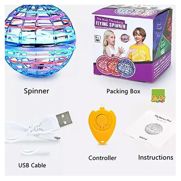 این محصول یک توپ پرنده ریموت دار است که دارای چراغ های رنگارنگ میباشد. این اسباب بازی هیجان انگیز شارژی بوده و برای حرکت از یک موتور محرک بادی استفاده میکند و با تنظیم حرکت دست و با یک هول به جهت دلخواه تان جا به جا میشود. بدنه این محصول بسیار سبک بوده تا در هنگام بر خورد آسیبی به فرد و کودک تان وارد نشود.شما می توانید آن را با یک کابل Micro USB به مدت 25 تا 30 دقیقه شارژ کنید تا کاملاً شارژ شود. این اسباب بازی با یک بار شارژ، 10 دقیقه کامل سرگرمی را برای شما به ارمغان می آورد. زمان خارج از پرواز در عین حال، میتوان آن را با رایانه، آداپتور برق، پاوربانک یا با استفاده از کابل USB شارژ کرد.