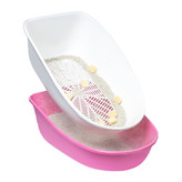 همچنین ظرف خاک گربه بدون توری تک لگن لبه دار دارای یک مدل بسیار کاربردی دیگری با یک لگن و یک توری اضافه می باشد که شما میتوانید با رعایت بهداشت کامل خاک گربه را بطور کامل الک کرده و خاک گربه خود را مجدد استفاده کنید.