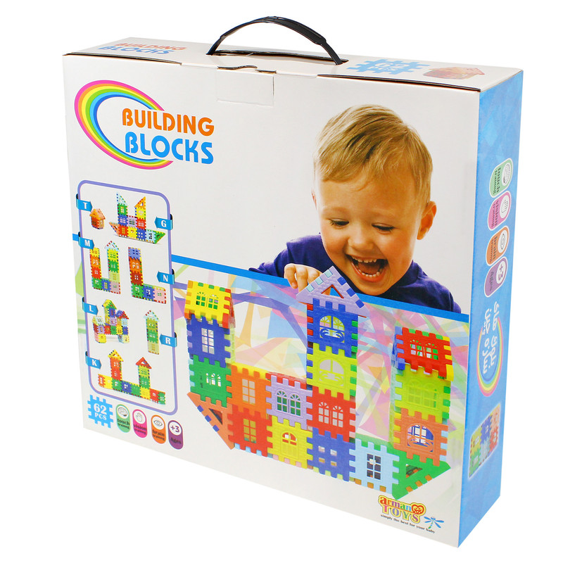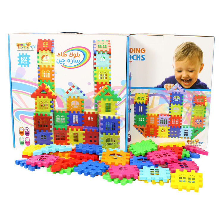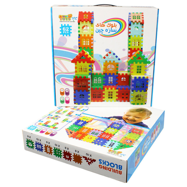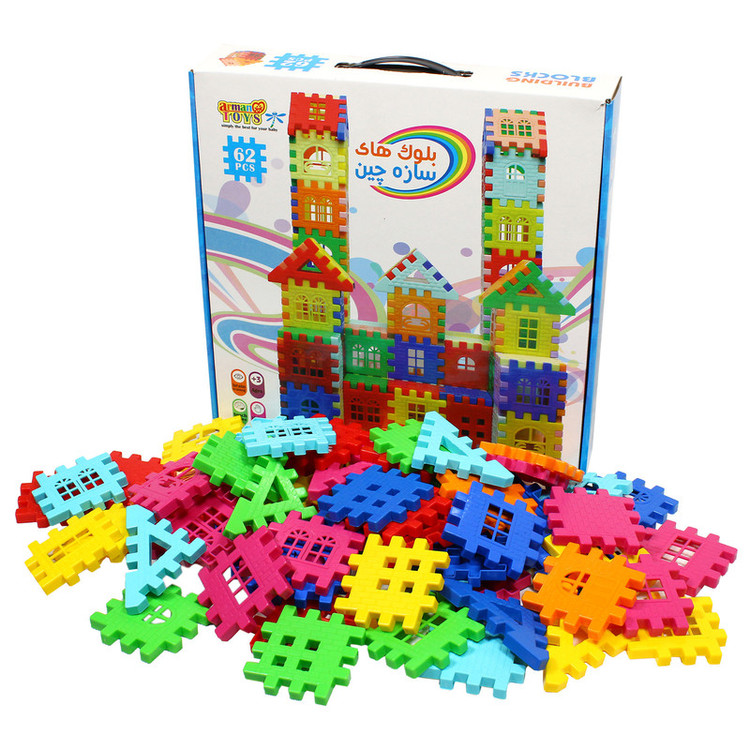 بلوک های خانه سازی 62 قطعه یکی از اسباب بازی های مورد علاقه کودکان و بسیار کاربردی در مهد کودک و خانه بازی است.