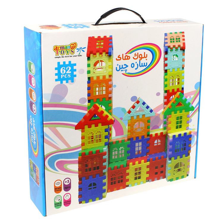 به وسیله اسباب بازی فکری بلوک های خانه سازی 62 قطعه ،کودک مفهوم نظم را درک می کند.