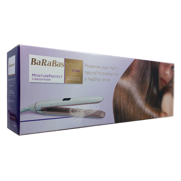 اتومو باراباس نانو مدل 3355، محصولی با طراحی نوین که در عین زیبایی و کیفیت ، دارای تکنولوژی پیشرفته است . دمای این اتو مو قابل تنظیم بین 100 تا 230 درجه سانتی گراد می باشد که توسط نمایشگر تعبیه شده بر روی دستگاه قابل مشاهده است . این اتوی مو دارای صفحه تمام سرامیک می باشد . صفحههای سرامیکی حرارت را به طور یکنواخت توزیع کرده و تا حدودی از سوختگی موها جلوگیری میکند. با توجه به ظرفیت گرمایی بالای سرامیک ، صفحه سرامیکی گرمای خود را برای مدت طولانی حفظ میکند. اتصال کابل برق به دستگاه ، قابلیت چرخش ۳۶۰ درجه دارد و استفاده از آن را ساده تر کرده است.