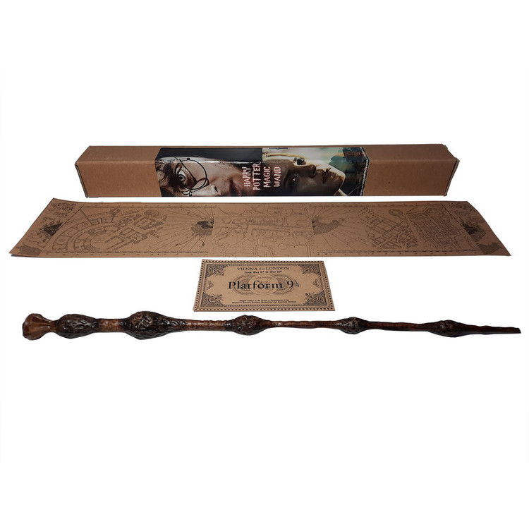 چوبدستی جادویی هری پاتر، ابزار ایفای نقش هری پاتر و مابقی بازیگران این فیلم زیباست.تمامی طرفداران هری پاتر با چوب جادویی هری پاتر آشنایی دارند.این چوب دستی از جنس پلاستیک تقویت شده می باشد تا براحتی شکسته نشود،ولی برای استفاده آن باید مواظب ضربه نخوردن آن باشید، به همراه چوب هری پاتر جعبه ی کارتنی، کارت قطار، و نقشه ی مینیاتوری غارتگر هری پاتر به صورت هدیه برای شما ارسال می شود. کارت قطار لندن به هاگواترز برای دوستداران هری پاتر کلیدی است که ورود به دنیای جادویی و اسرار آمیز را محقق میکند. نقشه غارتگر هری پاتر این نقشه به شما جادوگر عزیز این امکان رو میده که موقعیت تمامی افراد داخل هاگوارتز و تمامی بخش ها ، گذرگاه های مخفی و خلاصه تمامی قسمت های قلعه رو ریز به ریز زیر نظر داشته باشید. البته بجز اتاق های غیر قابل نفوذ مثل اتاق نیازمندی ها و تالار اسرار اما مطمئن باشید که هیچ چیزی اعم از انیماگوس ، طلسم ها ، محلول های جادویی ، شنل نامرئی کننده و… نمیتونن مانع بشن که شما نبینیدشون. مگر اینکه اون ها خودشون رو داخل اتاق های غیرقابل نفوذ پنهان کرده باشن اسباب بازی زینتی چوب هری پاتر به همراه کارت قطار و نقشه ی غارتگر از همه ی انواع دامبلدور ، هرمیون گرنجر ، دراکو مالفوی ، پروفسور مک گونگال ، پروفسور اسنیپ و دیگر نقش ها قابل سفارش است.