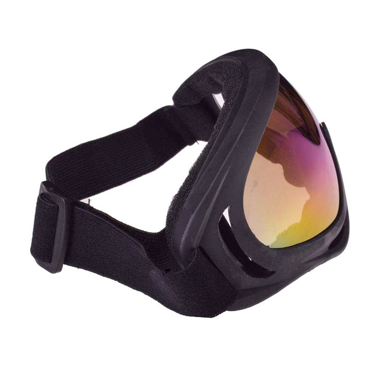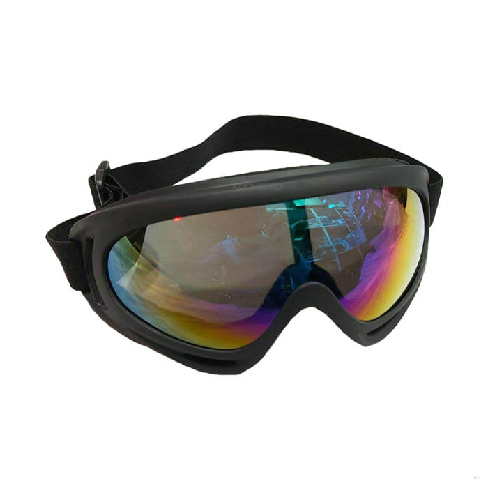 این عینک نوعی عینک موتورسواری است که تقریبا نیمی از صورت شما را می پوشاند و مانع آسیب اشعه های مضر خورشید به چشمان شما میشود. این عینک با یک کش پهن یک تکه بر روی سر شما قرار می گیرد و روی آن محکم می شود، که احتمال افتادن آن را به صفر می رساند.شما میتوانید این عینک را برای ورزش های دیگر خود نظیر :موتور سواری،کوهنوردی، اسب سواری ، اسکی و… استفاده کنید. عدسی های این عینک از جنس طلق تولید شده که نوعی پلاستیک فشرده با مقاومت بسیار بالا در مقابل شکستن است که علاوه بر زیبایی خیره کننده و خاص خود ، موجب حفظ دید شما حتی در بدترین شرایط آب و هوایی خواهد شد.از کاهش دید شما که بر اثر باد، باران، طوفان و… ممکن است اتفاق بیافتد جلوگیری می کند. این عینک با حالت انعطاف پذیری که دارد از مقاومت بسیار خوبی برخوردار میباشد. این عینک با لبه های اسفنجی ابری نرم خود در اطراف فریم ، حالت انعطاف پذیری بسیار بالایی دارد که به حالت فرم صورت شما شکل میگیرد و مانع ورود اشعه های مضر و گرد و غبار و… میشود. نکته ی منحصر به فرد در مورد عینک این است که دارای دریچه تهویه روی فریم عینک میباشد که علاوه بر اینکه مانع ورود گردوغبار، باد و باران و… به چشم شما میشود، از تعریق و بخار کردن و درنتیجه کاهش دید شما جلوگیری می کند.