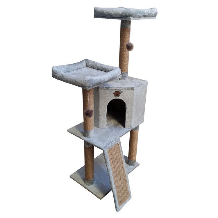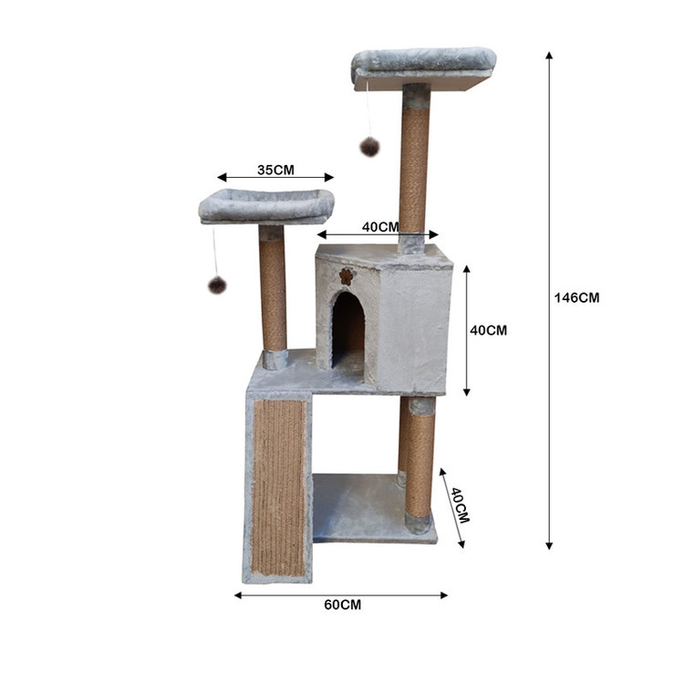 اسکرچر گربه مدل B46 یکی از اسکرچرهای با کیفیت و مقاوم از برند هیواپت است. در تولید این اسکرچر از تختههای مستطیلی پوشیده شده از پارچه ی پولیش لطیف استفاده شده. ستونهای این محصول نیز با نخ کنفی پوشش داده شده است. این محصول دارای یک سرسره برای بازی و سرگرمی گربه ها می باشد. در طبقه دوم این محصول یک لانه گربه به همراه 2 ستون وجود دارد. روی هر یک از ستون ها نشیمنگاهی قرار دارد که گربه ها روی آن بنشینند و هرکدام دارای یک پوم پوم برای بازی کردن گربه ها است. این محصول بسیار مناسب برای گربه های بازیگوش است.