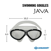 عینک شنا جاوا از برند Schildkröt عینکی محبوب در میان شناگران تفریحی و ورزشکاران آب های آزاد است.سطوح آب بندی این عینک نرم و انعطاف پذیر و نسبتاً بزرگ (سیلیکون نرم) میباشد که مهر و موم (وکیوم) بسیار خوبی را بر روی چشمان و صورت شناگر ایجاد می کند زیرا به راحتی روی پیشانی و استخوان گونه قرار می گیرند و کاملاً با فرم صورت سازگار می شوند. لنزهای منحنی نمای محیطی 180 درجه را تضمین می کنند. علاوه بر این، پروفیل بسیار مسطح لنزها هیچ مقاومتی در آب ایجاد می کند.