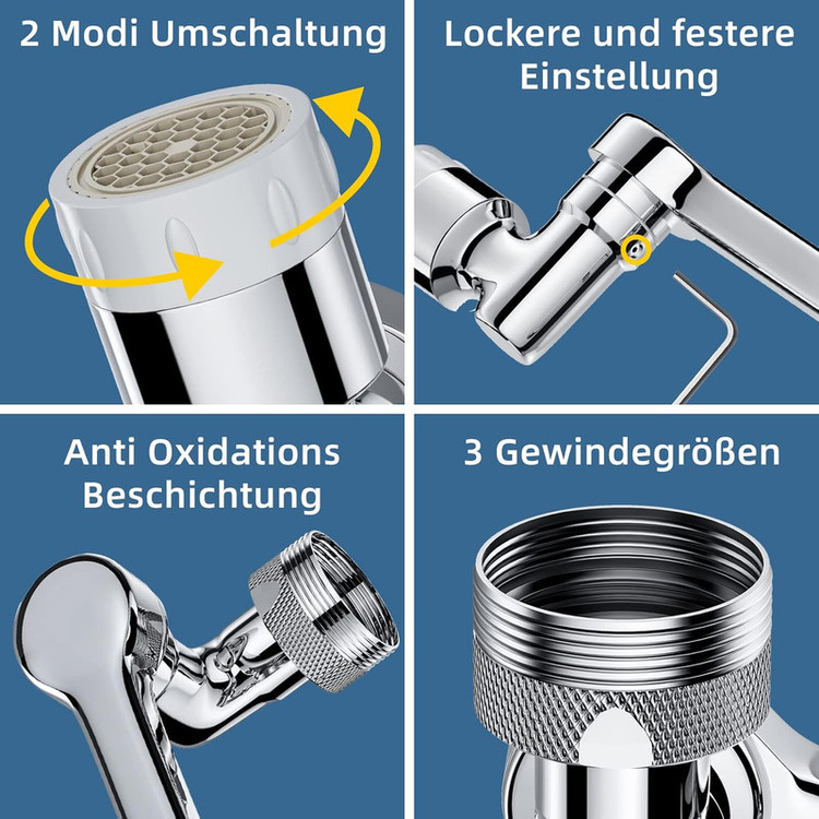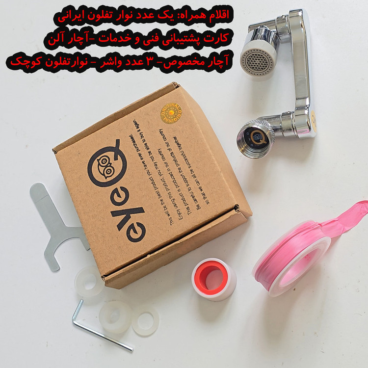 سری شیر آی کیو مدل چرخشی مفصل دار بازویی کد Steel-360 از جنس بسیار بسیار باکیفیت تولید شده است و اگر در نصب محصول هرگونه سوال یا آموزشی نیاز داشتید با شرکت پشتیبانی روی جعبه تماس بگیرید. مارک آی کیو بسیار معتبر است به دلیل داشتن خدمات پس از فروش عالی و شرایط بی نظیر تعویض کالا ، جز بهترین و معتبر ترین ها در ایران شناخته شده است. بعد از خرید به مارک روی محصول و کارتن دقت کنید و حتما محصول باید دارای هولوگرام طلایی باشد ( مشابه عکس ) . این شیر آب دارای چند حالت مختلف در چرخیدن است که می تواند آب را در زاویه های مختلف (چرخش 360 درجه ) خارج کند. این حالات را می توانید در عکس ها مشاهده کنید. این شیر دارای جعبه است که اقلام همراه آن در جعبه قرار داده شده اند. این اقلام شامل یک عدد رابط بزرگ - یک عدد رابط کوچک - یک عدد واشر - یک عدد نوار تفلون - یک عدد آچار آلن است . همچنین اگر در نصب محصول هرگونه سوال یا آموزشی نیاز داشتید با شرکت پشتیبانی روی جعبه تماس بگیرید