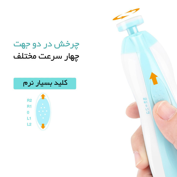 گرفتن ناخن های کودک با استفاده از روش های مرسوم و ناخن گیر های معمولی می تواند کاری سخت باشد و حتی باعث آسیب رسیدن به انگشتان نوزادان و کودکان شود. ست ناخن گیر برقی کودک VL-H2دستگاهی سریع و ایمن برای کرفتن ناخن و پولیش ناخن های کودک است که دیگر خطرات روش های مرسوم را ندارد. شما با استفاده از ناخن گیر برقی کودک VL-H2 میتوانید سرعت و جهت چرخش سری دستگاه را به دلخواه تنظیم کنید. درجه سختی سریهای این دستگاه با توجه به سنین مختلف کودک از نوزادی تا سنین بالاتر درجه بندی شده و در رنگ های مختلف در جعبه محصول قرار گرقته است. در سر این دستگاه LED تعبیه شده تا در نور کم نیز با دقت خوبی بتوان از آن استفاده کرد همچنین این دستگاه صدای کمی تولید می کند (کمتر از35 دسیبل) و به راحتی می توان به هنگام خواب کودک از آن استفاده کرد. این دستگاه از طراحی ارگونومیکی بهره می برد که استفاده از آن را برای والدین بسیار راحت کرده است. همچنین در جعبه این محصول سری زاپاس به تعداد کافی قرار داده شده است. این دستگاه همچنین دارای سری برای بزرگسالان نیز می باشد. متریال استفاده شده در این دستگاه فاقد هر گونه مواد مضر برای کودک از جمله (BPA، Phthalate، Latex) می باشد.