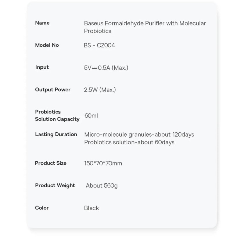 تصفیه کننده هوا خودرو باسئوس مدل Formaldehyde Purifier