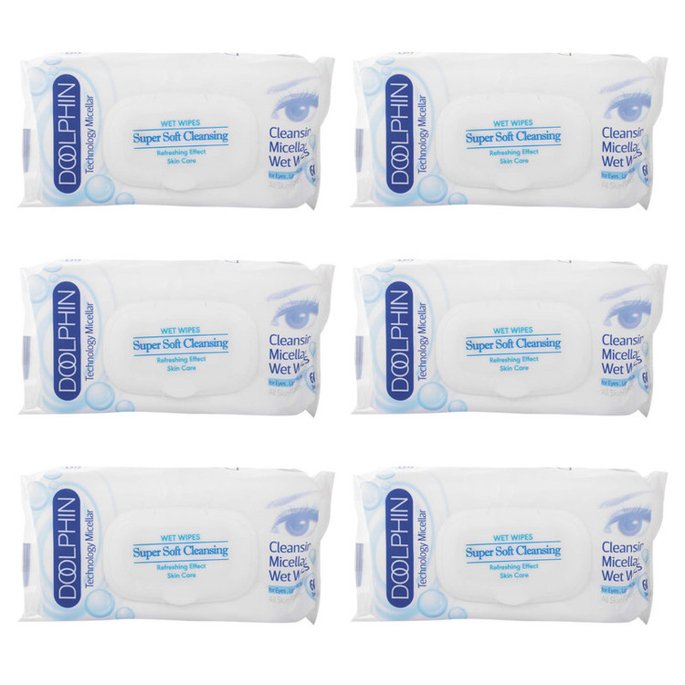 دستمال مرطوب دلفین مدل Skin Care مجموعه 6 عددی