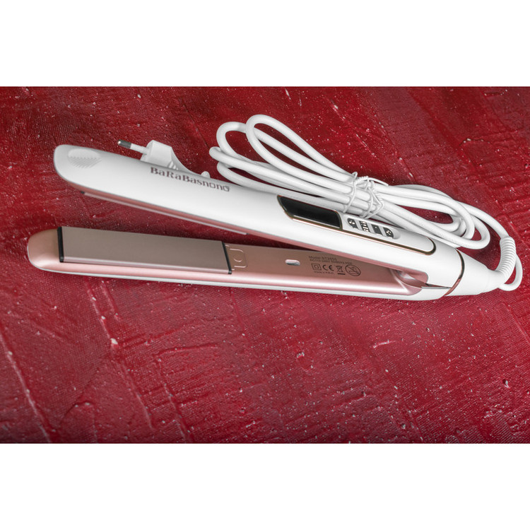 برند باراباس نانو دارای محصولات متنوع و حرفهای است که در سالنها برای آرایشگران و حتی مصرف کنندگان در منزل مناسب میباشد. اتو مو باراباس نانو مدل ST2855 محصولی با طراحی نوین که در عین زیبایی، دارای تکنولوژی پیشرفته است. دمای این اتو مو قابل تنظیم تا750 درجه فارنهایت (400 درجه سانتی گراد) می باشد که توسط نمایشگر LCD تعبیه شده بر روی دستگاه قابل مشاهده است . دکمه تنظیم دما به کاربر امکان می دهد تا درجه حرارت اتو را به دلخواه تنظیم کند. ین اتوی مو دارای صفحات آلومینیومی با قابلیت گرم شدن PTC می باشد که با افزایش دما میزان عبور جریان الکتریسیته را کاهش میدهد تا از داغ شدن بیش از اندازه صفحات اتو مو جلوگیری کند. این ویژگی مناسب افرادی است که موهای حساسی دارند و یا می خواهند حرارت کمتری را به موهای خود وارد کنند.
