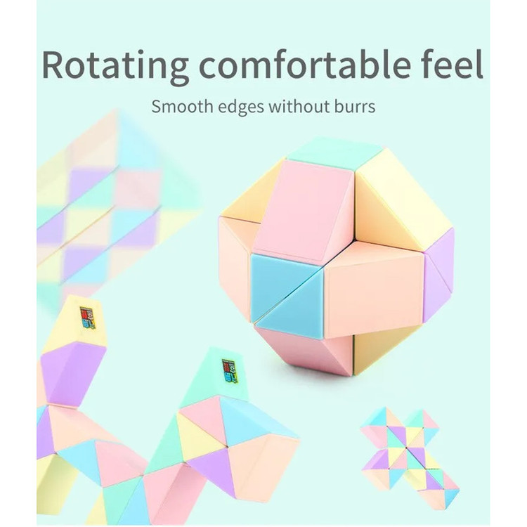 روبیک ماری، یک بازی فکری، تست هوش و نوعی بازی آموزشی است. این بازی از جنس پلاستیک است. با چرخاندن و تکان دادن قطعات روبیک می توان اشکال مختلف ساخت. این بازی فکری، یک بازی تک نفره است، اما می توان به صورت سرعتی نیز در گروه های چند نفره نیز بازی کرد. روبیک ماری 24 قطعه مویو ماکارون طرح پاستلی یک روبیک ماری با کیفیت و باثبات است. این روبیک 24 قطعه مستقل دارد که هر کدام در 4 جهت قابل چرخش هستند. این نکته باعث می شود بتوان این مار را به انواع و اقسام اشکال تغییر حالت داد. اشکالی مثل پرنده، گربه، قلب، زرافه، قورباغه، اردک، گل و …با اندکی تمرین و استفاده از راهنماهای آموزشی قابل ساختن هستند که باعث می شود این روبیک در رشد خلاقیت و هوش بسیار موثر باشد.