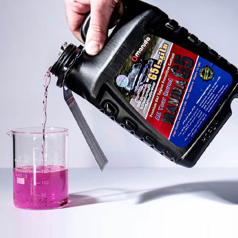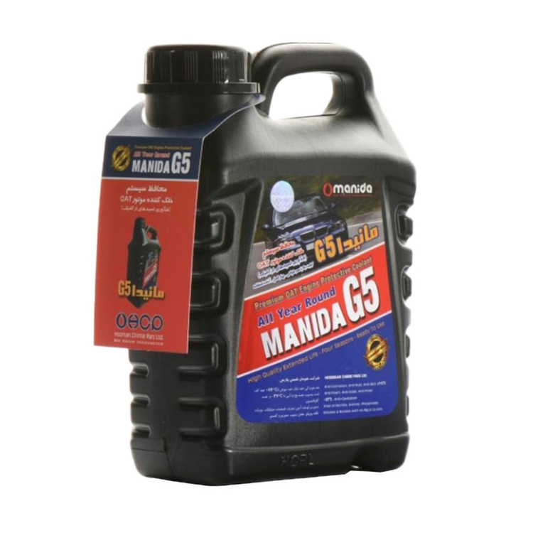 این محصول با بطری بسته بندی به رنگ مشکی و طوسی می باشد ،خنک کردن مناسب موتور یکی از کارهای بسیار حساسی است که تاثیر مستقیمی روی عملکرد خودرو و عمر مفید موتور دارد. برای این منظور از سیالات خنک کنندهای مانند آب و ضدیخها استفاده میشود. محصول فوق را از لحاظ عملکرد میتوان در گروه ضدیخها و ضدجوشها قرار داد؛ با این تفاوت که از مزایای دیگری نیز برخوردار است. این ضدیخ خاصیتی محافظتی داشته و قادر است در مسیر حرکتی خود از بخشهای فلزی و لاستیکی رادیاتور و سیستم خنک کنندهی خودرو محافظت کند. از جملهی فواید محافظتی این محصول میتوان به قابلیتهای ضد زنگ، ضدخوردگی، ضد رسوب و ضد کاویتاسیون اشاره کرد. این محلول هیچ اثر زیان آوری برای سیستم خنک کنندهی خودرو ندارد و با ترکیبات ویژهای که دارد دمای انجماد و جوش را دستخوش تغییر کرده است. این محلول تا دمای مثبت 112 درجهی سانتیگراد جوش نمیآید و تا دمای منفی 37 درجهی سانتیگراد دچار یخ زدگی نمیشود. این محصول را نباید با آب ترکیب کرد و شرکت «مانیدا» (Manida) آن را تحت عنوان مدل «G5» به بازار عرضه میکند. کیفیت و تکنولوژی ساخت در این برند نسبت به برندهای ایرانی و چینی به مراتب بالاتر بوده و سیستم اب خنک خودرو شما را در سردترین و گرمترین نقاط کشور در بهینه ترین حالت قرار می دهد