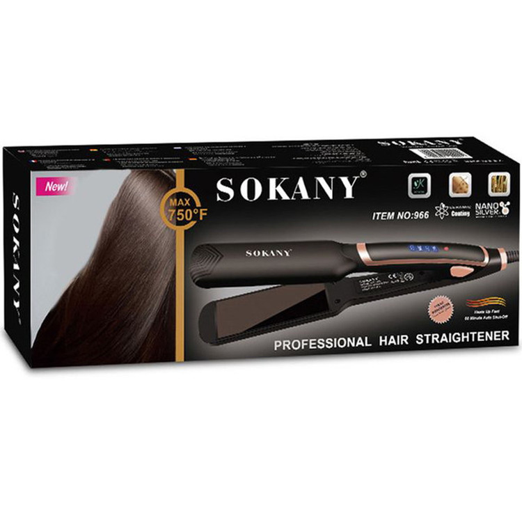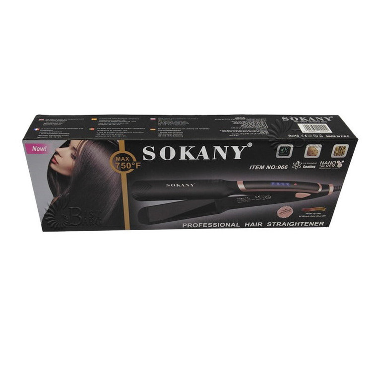 اتو موی سوکانی مدل 966 Plasma Therapy مورد تایید استاندارد اروپا CE می باشد که به دلیل متریال مرغوب به کار رفته یکی از بهترین اتوموهای موجود در بازار است. جنس صفحات این اتومو از سرامیک کراتینه از نوع نانو کراتین با لایه نانو پلاسما ساخته شده که از آسیب زدن به مو جلوگیری خواهد کرد و از آنجایی که مجهز به عملکرد Plasma Therapy است مانع از وز شدن مو می شود و همچنین موهای آسیب دیده را ترمیم میکند. به دلیل طراحی ارگونامیک این اتو مو به راحتی میتوان موها را کرلی کرد توجه داشته باشید به دلیل پهن بودن صفحات اتو مو زمان فر کردن فر پهن و بزرگ میشود.بیشینه ی دما در این اتو مو از 265 درجه تا 750 درجه ی فارنهایت می باشد که با توجه به جنس و نیاز موهایتان میتوانید روی دمای مناسب تنظیم کنید که از درجه حرارت بالا و کیفیت عالی برخوردار است به گونه ای که می توان از آن به صورت حرفه ای در آرایشگاه ها استفاده کرد. و همچنین مجهز به سیستم گرمایشی سریع PTC هست لذا به سرعت در عرض 30 ثانیه به دمای مورد نظر خواهد رسید روی بدنه دستگاه یک نمایشگر LED کار گذاشته شده است که شما رو از دمای انتخابی مطلع خواهد کرد از طرفی مجهز بودن به سیستم نانو سیلور از دیگر قابلیتهای مهم دستگاه بوده که ضد باكتري، ويروس و قارچ است