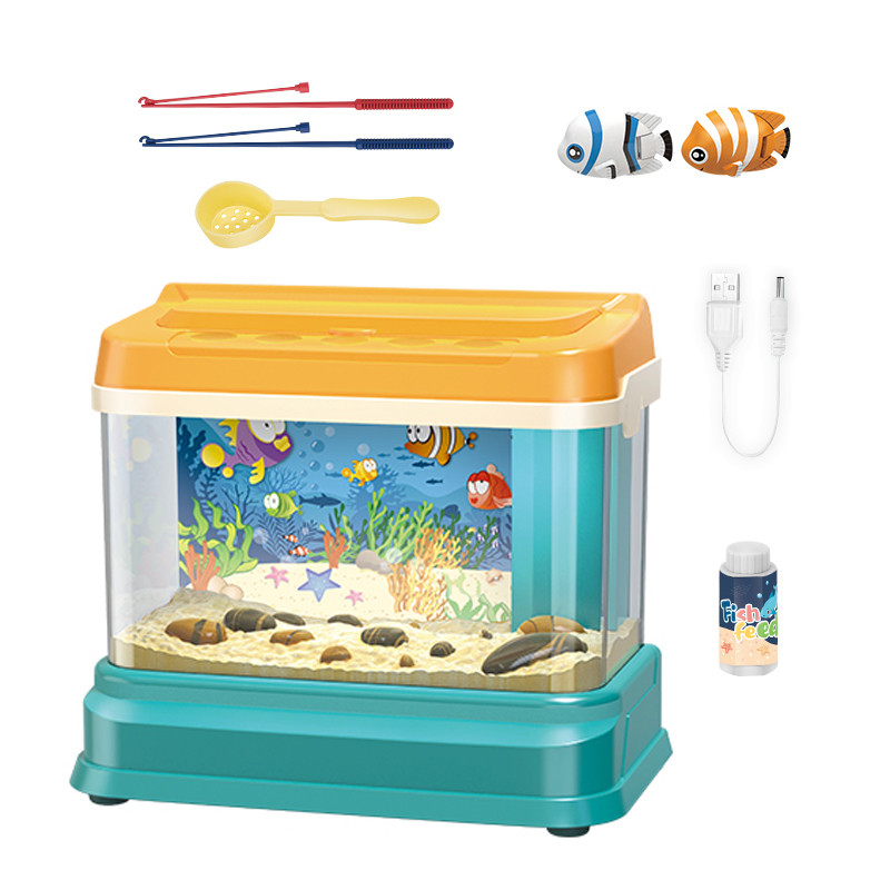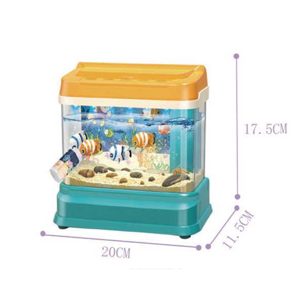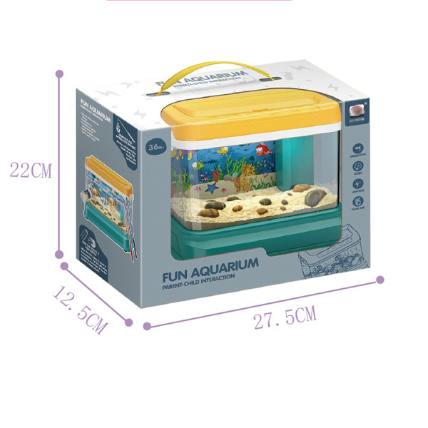 برای شاد کردن فرزند خود بشتابید ! یک آکواریوم زیبا و کوچک که می توانید برای ماهی های کوچک استفاده کنید . این آکواریوم موزیکال و چراغ دار است و میتوانید با پاوربانک و یا شارژ گوشی موبایل و ... از آن استفاده کنید و نیاز به باطری ندارد. به همراه این آکواریوم چند ماهی و یک ظرف غذای آهنربایی است .وقتی ماهی ها را در آکواریوم بیندازید ، با نزدیک کردن ظرف غذا به آکواریوم ، ماهی ها به سمت آن می آیند .