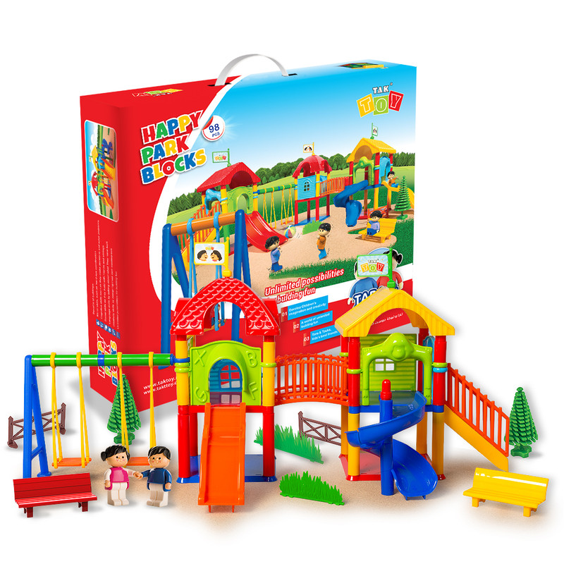 سری پارک شادی برند تک توی یک مجموعه ساختنی است . كودكان مى توانند متناسب با قطعات و وسايل متنوع و جذابى كه در اختيارشان قرار ميگيرد ، موقعيتهاى مختلفى از یک پارک هیجان انگیز را که همیشه مشتاق بازی در ان هستند را در خانه بسازند. باهم ذات پندارى با دو عروسك تارا و توکا همراه شوند و شادی وهيجان را درپارکی که خود ساخته اند تجربه نمايند . با توجه به اينكه أسباب بازى يك وسيله بسيار موثر در آموزش و انتقال مفاهيم به كودكان است درسرى پارک شادی ،علاوه بر سرگرمى و هيجان ، آموزش وتقويت بازه ى وسيعى از مهارتها و تواناييها مورد توجه قرار گرفته است .والدين و مربيان مى توانند مفاهيم اجتماعى مانند ، همكارى ، مسوليت پذيرى ،فداكارى وبخشندگى ،هوشيارى و …را با كمك اين مجموعه به صورت غير مستقيم و جذاب به كودكان اموزش دهند