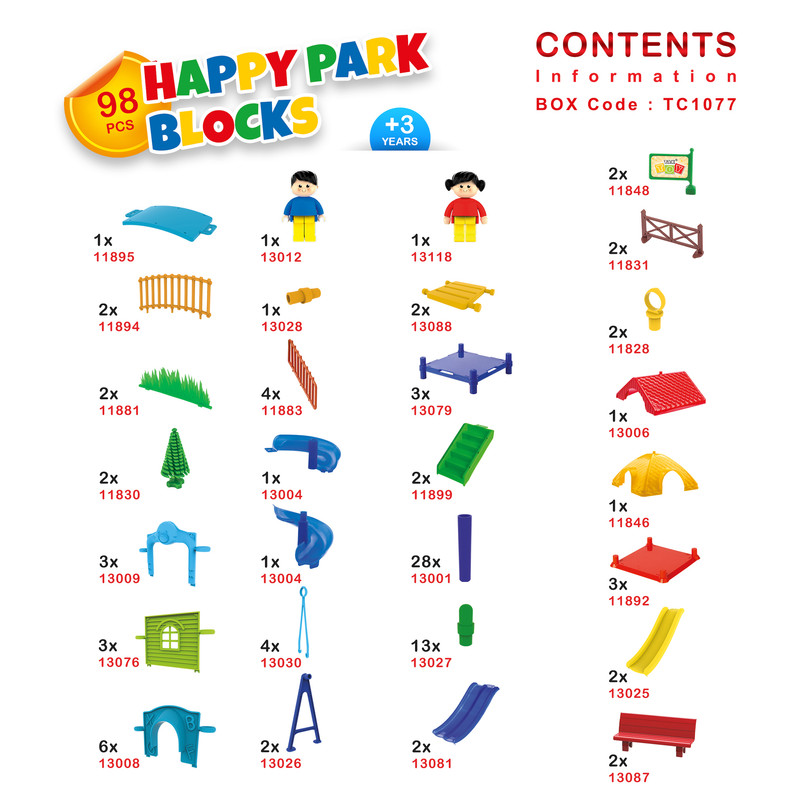 . سرى پارک شادی مجموعه مستقلى است كه مى توان براى تكميل و گسترش آن ازسری رنجر جیپ و رنجر سیکلت از محصولات گروه تك توى تهيه و استفاده شود تا دامنه ى وسيعترى از إمكانات را براى بازى و اموزش در اختيار كودكان و والدين و مربیان قرار دهد
