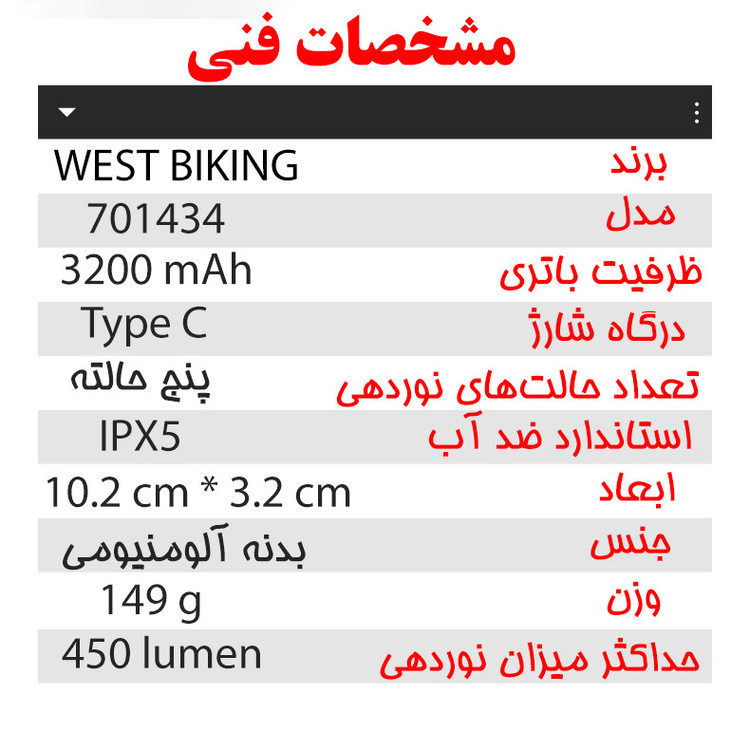 چراغ جلوی دوچرخه وست بایکینگ مدل 701434