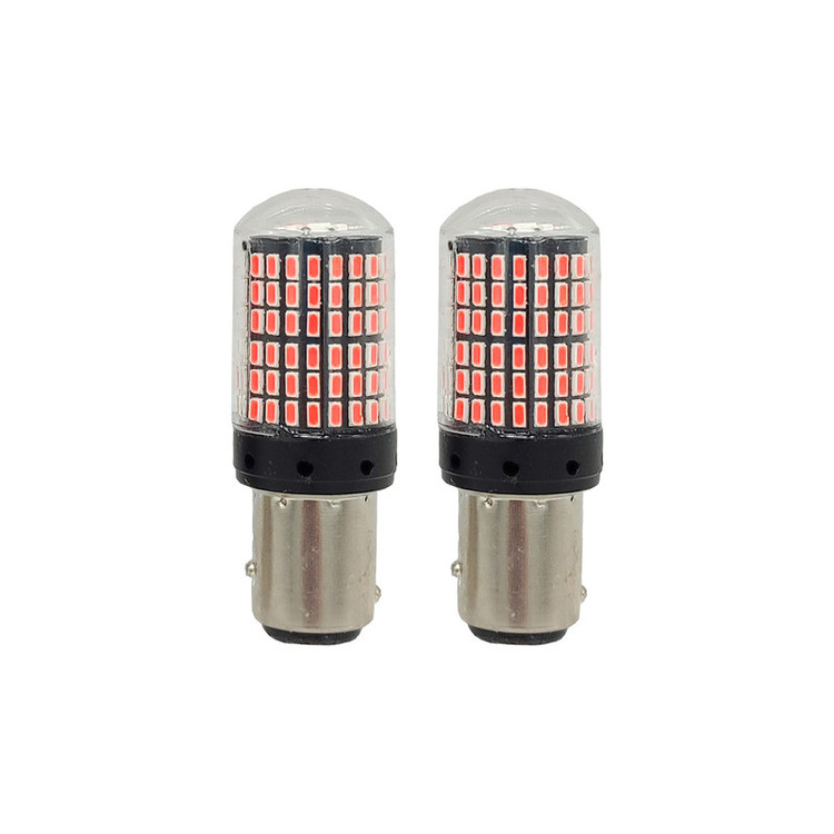 لامپ فندقی قرمز دو کنتاکت شامل دو عدد لامپ با ۱۴۴ عدد LED SMD رنگ نور قرمز رنگ می باشد و به جای لامپ فابریک ترمز تمامی خودروها به آسانی قابلیت نصب دارد. این مدل لامپ ال ای دی مانند مدل های فابریکی هنگام روشن کردن چراغ های کوچک خودرو روشن و هنگام ترمز گرفتن نور آن بیشتر می شود.