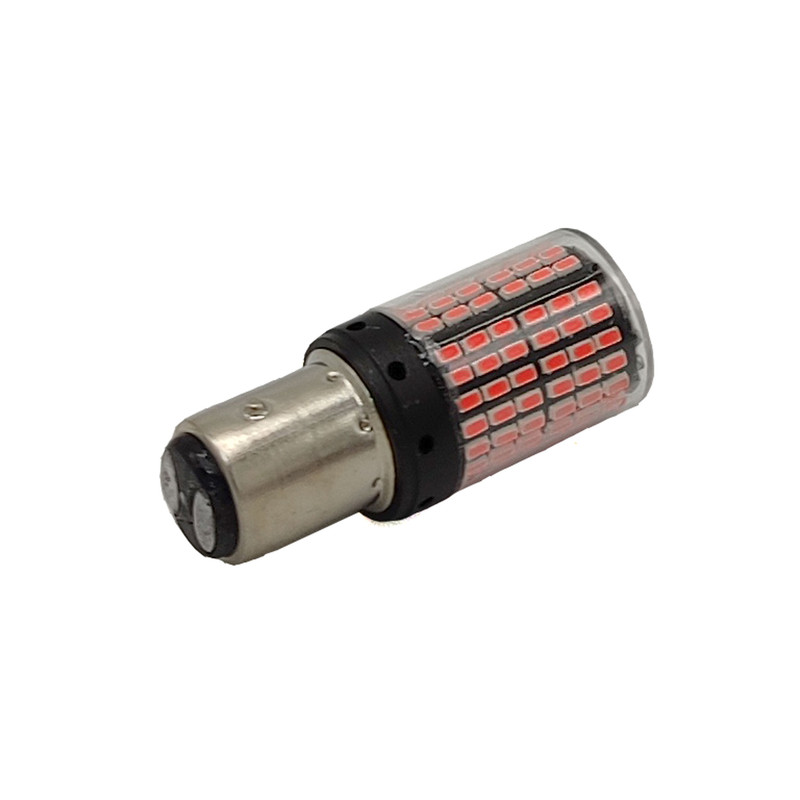 لامپ فندقی قرمز دو کنتاکت شامل دو عدد لامپ با ۱۴۴ عدد LED SMD رنگ نور قرمز رنگ می باشد و به جای لامپ فابریک ترمز تمامی خودروها به آسانی قابلیت نصب دارد. این مدل لامپ ال ای دی مانند مدل های فابریکی هنگام روشن کردن چراغ های کوچک خودرو روشن و هنگام ترمز گرفتن نور آن بیشتر می شود.