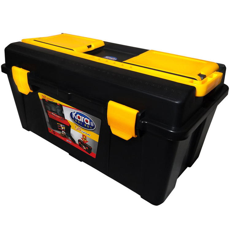 از مهمترین وسایل مورد نیاز در هر منزل و محل کاری، داشتن یک جعبه ابزار مناسب جهت نگهداری، جابه جایی و دسترسی بهتر به ابزار است. جعبه ابزار «کارا» علیرغم اینکه نمونه مشابه محصولات خارجی ست، ولی از لحاظ کمی و کیفی توانسته خود را با برندهای معروف مطابقت بخشد. مهم ترین ویژگی این جعبه ابزار، استحکام مثال زدنی و تحمل وزن بسیار بالا معادل 120 کیلوگرم است، این در حالی ست که خود محصول از وزنی بسیار کم برابر با حدود 1.5 کیلوگرم برخوردار است. جعبهی کارا دارای دو قفل پلاستیکی مستحکم است که مانع از باز شدن درب جعبه در هنگام حمل و جا به جایی میشود. دسته اصلی خود جعبه به طوری طراحی شده که در هنگام جابه جایی حتی در صورت باز بودن قفلها از باز شدن جعبه جلوگیری میکند و تنها در صورتی جعبه باز خواهد شد که دسته آن را بخوابانید. از دیگر ویژگیهای بارز این محصول می توان به دو جایگاه مخصوص در قسمت فوقانی که خود هر کدام دارای 3 محفظه ویژه ی پیچ و مته و... است، اشاره کرد. سینی مجزا با 6 محفظه ی جداگانه درون این جعبه ابزار به خصوصیات و کاربردهای آن میافزاید. این سینی به گونهای طراحی شده که علاوه بر برخوردار بودن از یک دسته محکم، 6 جایگاه با ابعاد مختلف را برای شما در نظر گرفته تا هر گونه ابزار با اندازههای متفاوت را در آن دسته بندی کنید.