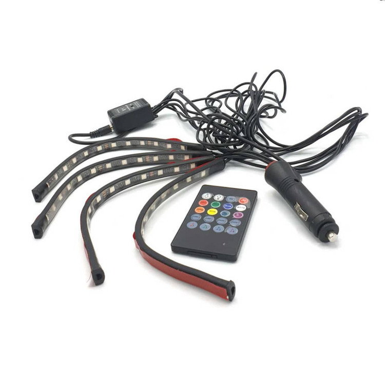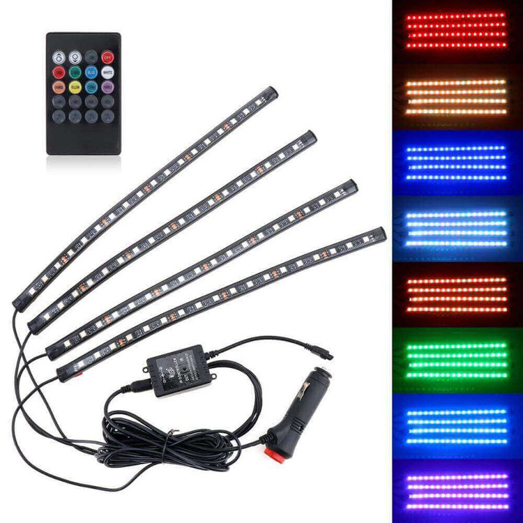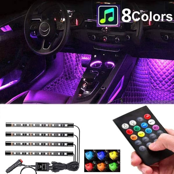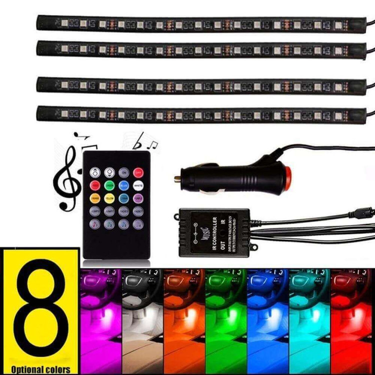 کیت نور پردازی داخل خودرو مناسب برای تمامی خودرو ها است.داخل بسته بندی این محصول 4عدد ال ای دی به طول 12سانتی متر وجود دارد که پشت هر ال ای دی چسب دو طرفه برای نصب در مکان دلخواه قرار داده شده است .دارای سنسور صدا که هنگام پخش اهنگ داخل ماشین رقص نور زیبایی ایجاد میکند.دارای رابط فندکی ماشین برای برق رسانی به محصول میباشد و همچنین دارای ریموت کنترل برای عوض کردن رنگ یا تغییر افکت نور پردازی میباشد و در انتها این محصول ضد آب بوده و امکان کم کردن نور با استفاده از ریموت کنترل مقدور است .