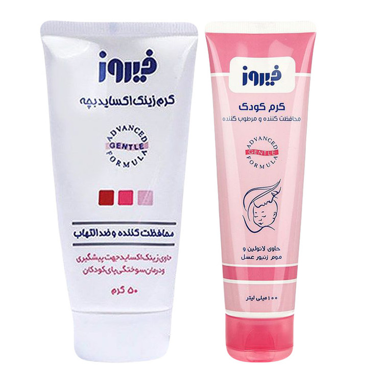 حجم: کرم محافظت کننده و مرطوب کننده کودک فیروز مدل A1 حجم 100 میلی لیتر و کرم زینک اکساید بچه فیروز مدل C1 حجم 50 میلی لیتر میلیلیتر