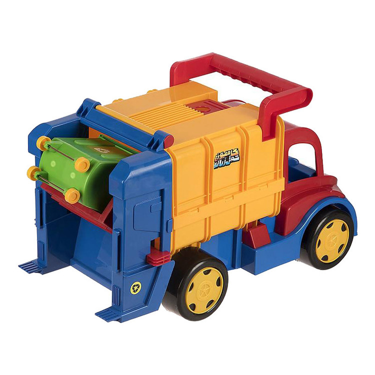یکی از ماشینهایی که بچهها آن را بسیار دوست دارند، ماشینهای حمل زباله است. این کامیون برای کودکان بالای سه سال طراحی شده و به علت ظاهر رنگارنگ و کیفیت مناسب ساختش میتواند هدیهای مناسب برای بچههای بالای سه سال باشد. این ماشین 64سانتی، یک سطل زبالهی پلاستیکی همراه خود دارد که به علت داشتن چرخ در قسمت پایینیاش، میتوان آن را روی زمین حرکت داد. همینطور این سطل زبالهی 14.5سانتی، در دارد که بهراحتی باز و بسته میشود. با کمک دستهای که در قسمت پشتی ماشین قرار دارد، میتوان سطل زباله را داخل قسمت مخصوص آن خالی کرد. همچنین میتوان همانند ماشینهای زبالهی واقعی، سطل آن را توسط زبانههای کناری به کامیون وصل و سپس حرکت کرد.