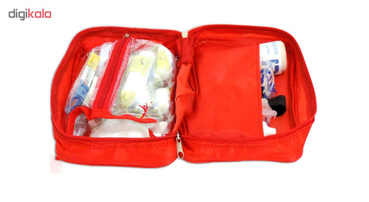 محتویات جعبه کمکهای اولیه: ماسک , چسب زخم , دستکش , پد چشمی , گاز استریل , بتادین , باند کشی , باند زخم , چسب باند , پد الکلی , تیغ بیستوری , پنبه , سنجاق قفلی , چسب ضد حساسیت , قیچی