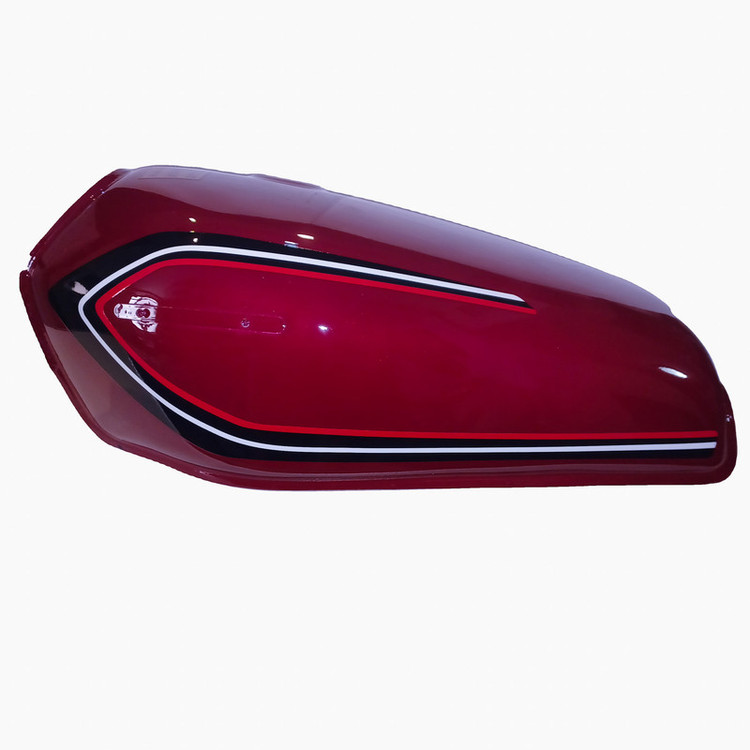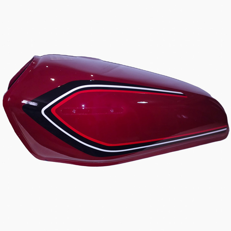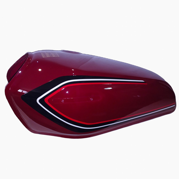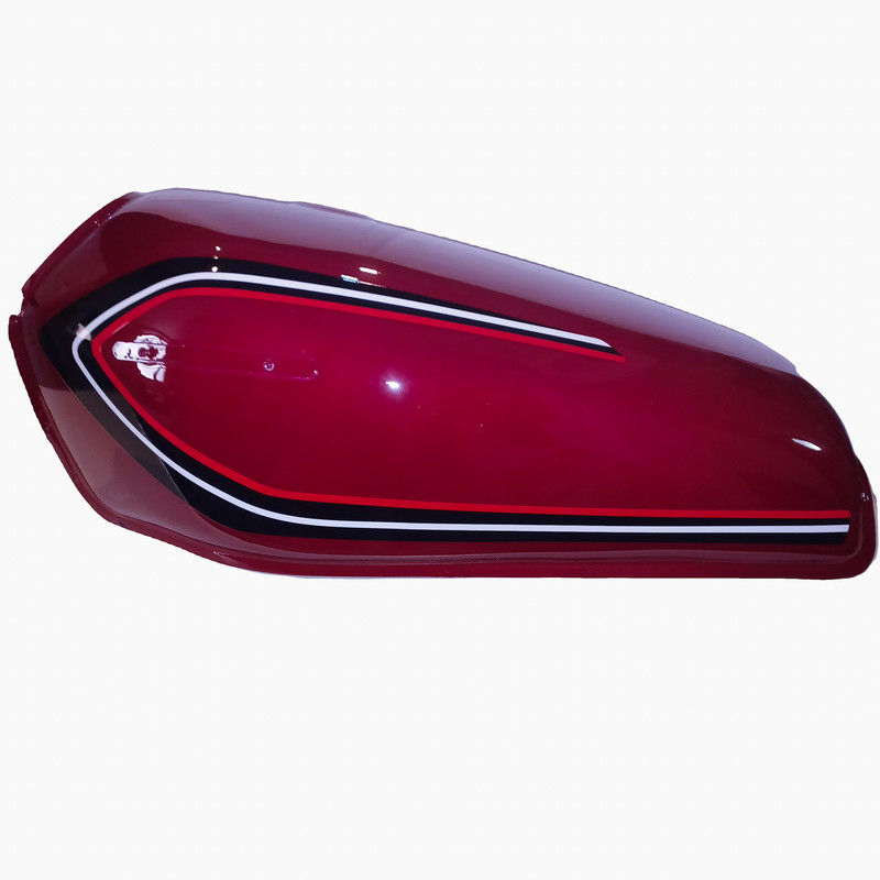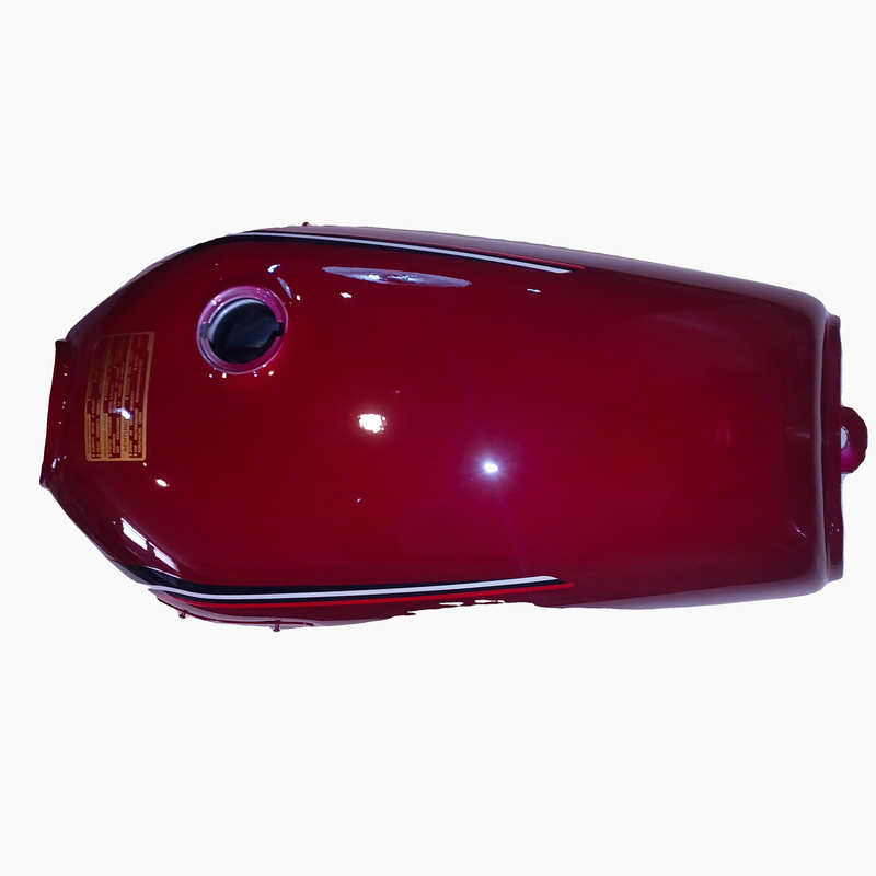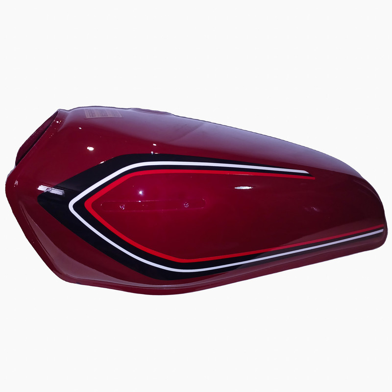 باک قبل از رنگامیزی چربی زایی و شستشو میشود و از رنگ و کیلر کوره ای مایع درجه یک استفاده میشود ضخامت ورق رویه و زیره 80 میباشد ظرفیت باک حدودا 10 لیتر میباشد درب باک بغل میباشد و برای استفاده انواع موتورسیکلت های کاربراتوری میباشد رنگ این باک زرشکی یا آلبالویی میباشد و بدون قاب بغل میباشد و