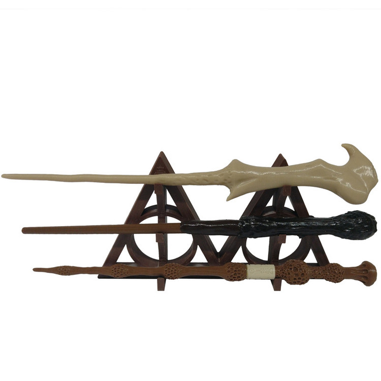 همهی ما با سری فیلم های هری پاتر که اقتباسی از کتابی به همین نام نوشته جی.کی.رولینگ آشنایی داریم، هر بار که هری چوب دستی رو به حرکت در میآورد و ورد مخصوصی رو به زبون میآورد دوست داشتیم جای هری پاتر باشیم تا از موقعیتی که درش قرار گرفتیم به نحو احسنت استفاده کنیم. محصولی که مشاهده میکنید مجموعه ای از چوب دستی های هری پاتر، لرد ولدمورت و چوب دستی الدر است که همراه یک استند مخصوص، 3 عدد برگه نقشه مدرسه و لیست جادو ها و سه عدد بلیط قطار میباشد که استفاده از آن یادآور همان لحظات نوستالژی از این فیلم میباشد.