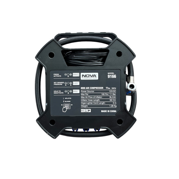 مینی کمپرسور هوا نووا مدل 9166 میباشد که با ویژگی های منحصر به فردی تولید شده است .