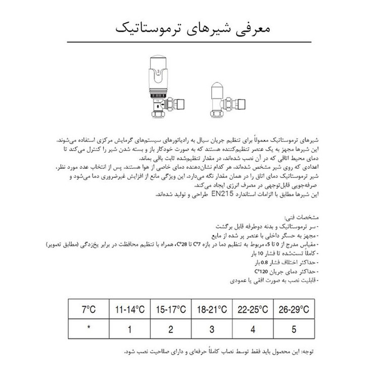 همچنین مشخصات این محصول مطابق با استاندارد EN 215 است.