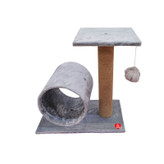 اسکرچرها در طرحهای مختلفی تولید میشوند ولی سادهترین آنها هم بخشی از نیاز گربههای خانگی را برطرف میکند. اسکرچر P140 محصولی دیگر از برند MYCAT میباشد که طراحی خاص و جالبی دارد، در یک طرف یک استوانه به صورت افقی قرار داده شده است، دو طرف این استوانه باز است و امکان جست و خیز و بازیگوشی را به گربه در این قسمت میدهد؛ علاوه بر این میتواند فضایی برای خواب یا استراحت گربه نیز باشد. در طرف دیگر پایه استوانهای بلندتری قرار دارد که اینبار بر روی آن یک صفحه تخت قرار داده شده که این قسمت هم میتواند مکانی برای بازی یا استراحت باشد. از زیر صفحه تخت یک پوم پوم کوچک نصب شده است. جنس این اسکرچر از جنس تخته نئوپان ضخیم روکش شده با پارچه پولیشی و نخ کنفی است که نخ کنفی برای پایههای استوانهای استفاده شده تا گربه همراه با کش و قوس آمدن بتواند در ارتفاع های متفاوت پنجه کشی کند.