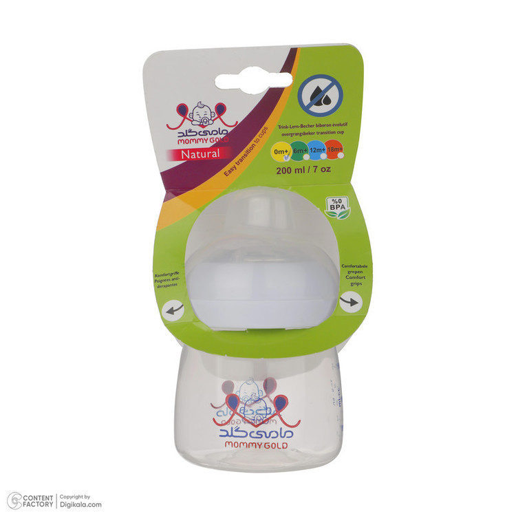 شیشه شیر مامی گلد مدل نچرال گروه سنی 6 تا 12 ماه ظرفیت 180 میلی لیتر