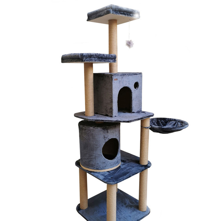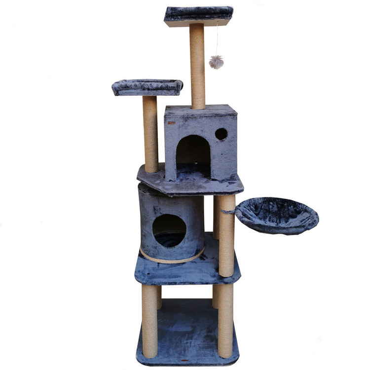 اسکرچر گربه مدل A81 یکی از محصولات زیبا و با کیفیت از برند هیواپت است. در تولید این اسکرچر از تختههای پوشیده شده از پارچه ی پولیش استفاده شده. ستونهای این محصول نیز با نخ کنفی پوشش داده شده است. این اسکرچر دارای 3طبقه می باشد که در طبقه دوم یک لانه استوانه شکل تعبیه شده و از ستون آن یک سبد پارچه ای آویزان می باشد. در طبقه سوم نیز یک لانه مکعبی تعبیه شده و دارای1 ستون است که روی آن یک نشیمنگاه برای بازی و نشستن گربه طراحی شده روی سقف خانه ای که در این طبقه وجود دارد یک ستون دیگر قرار دارد که روی آن نشیمنگاه با یک پوم پوم که از آن آویزان است وجود دارد که برای بازی و سرگرمی گربه ها می باشد. این مدل اسکرچر برای کسانی که دو گربه یا بیشتر دارند مناسب می باشد.