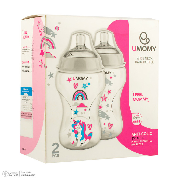 شیشه شیر یومامی مدل Anti Colic گنجایش 330 میلی لیتر - بسته 2 عددی