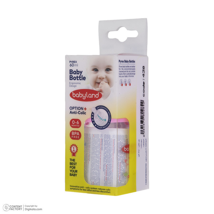 شیشه شیر بیبی لند مدل کلاسیک ارتودنسی پیرکس کد 05403 گنجایش 60 میلی لیتر