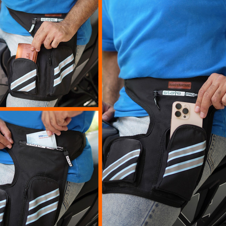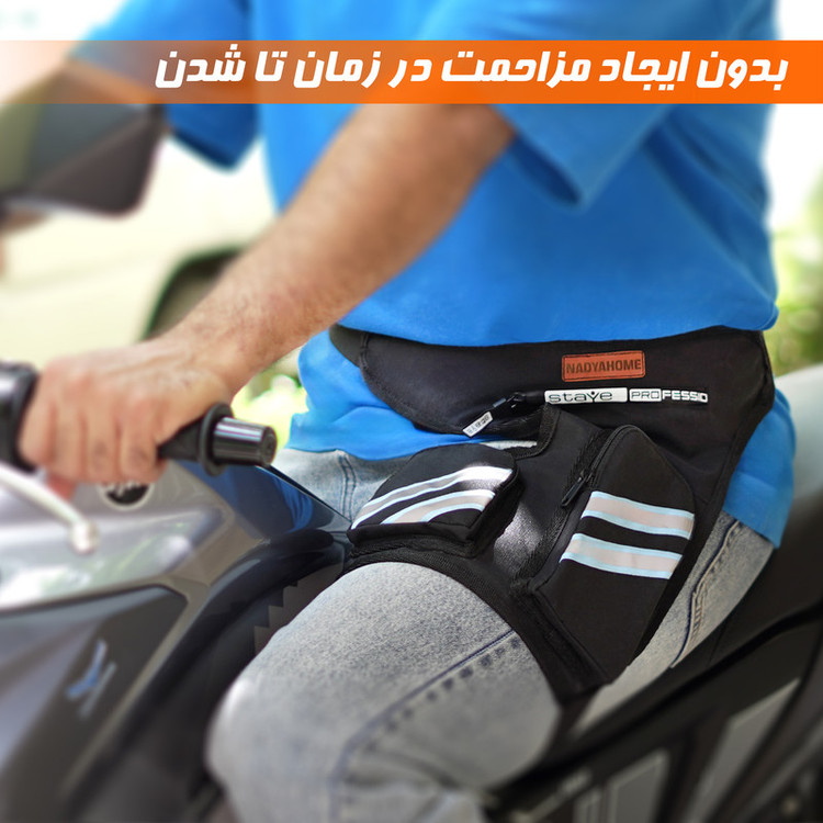اگر اهل موتورسواری هستید و یا کار شما با موتور انجام می شود حتما نیاز به یک کیف مناسب موتور سواری را حس نموده اید. نادیاهوم یک کیف درجه یک بی نظیر برای موتور سواری است تولید نموده است که در قسمت چپ بدن بر روی کمر و ران بسته می شود و هیچ مزاحمتی برای شما در حین رانندگی ایجاد نمی نماید. این کیف دارای سه عدد جیب زیپ دار در سایز های مختلف است تا مویایل، کارت های شناسایی و اعتباری، کلید و خرده ریزهای خود را داخل آن قرار دهید و با دستانی آزاد به رانندگی بپردازید. نوار های شبرنگ دوخته شده بر روی آن نیز یکی از مزایای کیف موتور سواری نادیاهوم می باشد. بند های کمر و ران کشی بوده و دارای امکان تنظیم سایزمی باشد.