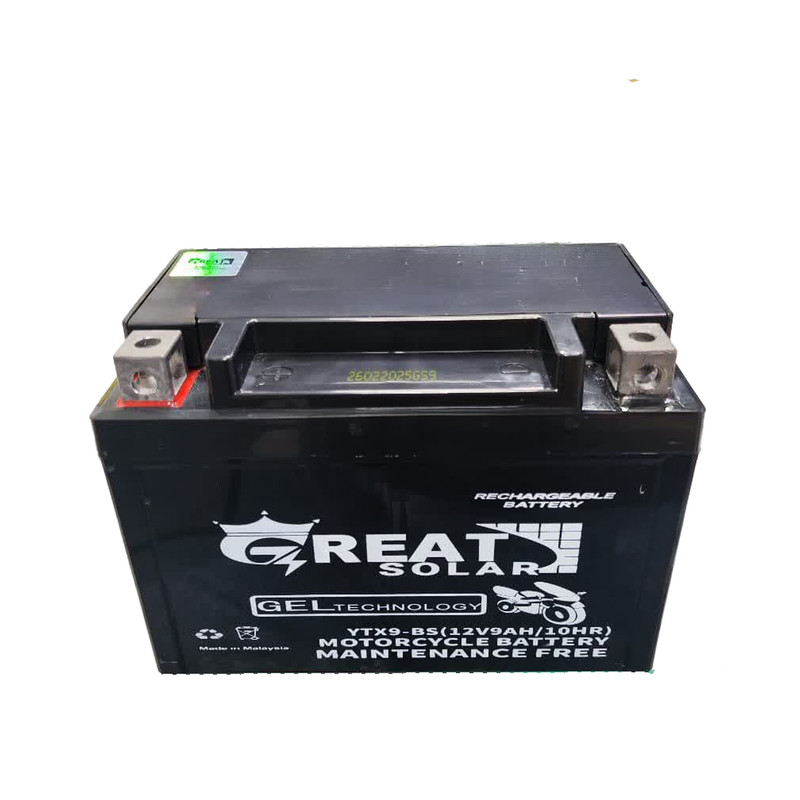 باتری موتورسیکلت گریت سولار مدل 12 ولت 9 آمپر کوتاه
