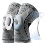 زانوبند طبی ورزشی مدل آنتی شوک آتل دار محصولی با طراحی فوقالعاده است که محافظت کامل از زانوی شما را تضمین خواهد کرد. این زانوبند طبی، درد ناشی از آرتروز، پارگی مینیسک، تورم، بورسیت، التهاب و محافظت بعد از جراحی را تسکین می بخشد. همچنین از آسیب دیدگی جلوگیری کرده و التهاب را کاهش می دهد. در قسمت جلوی این محصول یک حلقه سیلیکونی وجود دارد که با قرار گرفتن بر روی کشکک زانو از وارد شدن هر گونه ضربه یا آسیب به زانوی شما جلوگیری میکند. در کناره های محصول 2 فنر محافظ فلزی با بافت زنجیری و کاملا انعطافپذیر و ارتجاعی وجود دارد که به کاهش فشار روی زانوها کمک میکند. این محصول تمام کش است و پارچه ضخیم و بسیار مقاوم، با کشسانی فوقالعاده دارد. جنس پارچه علی رغم ضخیم بودن لطافت مناسبی دارد و از تنفسپذیری بالایی برخوردار است و در فعالیت های ورزشی باعث تعریق بیش از حد نخواهد شد. همچنین جنس محصول جاذب رطوبت و با قابلیت خشک شدن سریع است. این محصول با طراحی خاص خود فشار فعالیتهای ورزشی را به صورت متوازن روی تمامی نواحی زانوها پخش میکند تا از فشار آمدن به یک بخش خاص و یا بخش آسیب دیده جلوگیری شود. در لبه بالای قسمت داخلی محصول 2 نوار سیلیکونی ضد لغزش تعبیه شده تا از پایین آمدن یا جابجا شدن محصول در حین فعالیتهای شدید ورزشی جلوگیری به عمل آید. بافت قسمت پشت زانو نیز متفاوت و لطیفتر از بافت سایر قسمت های محصول است و به گونهای طراحی شده که در زمان جمع شدن زانو راحتی مناسب را برای شما به ارمغان آورد. همچنین لبه های محصول به منظور دوام بیشتر دارای دوخت مجزا هستند.