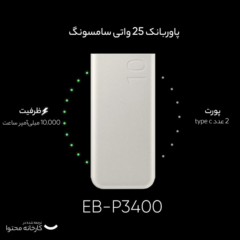 پاوربانک 25 وات سامسونگ مدل EB-P3400 ظرفیت 10000 میلی آمپر ساعت