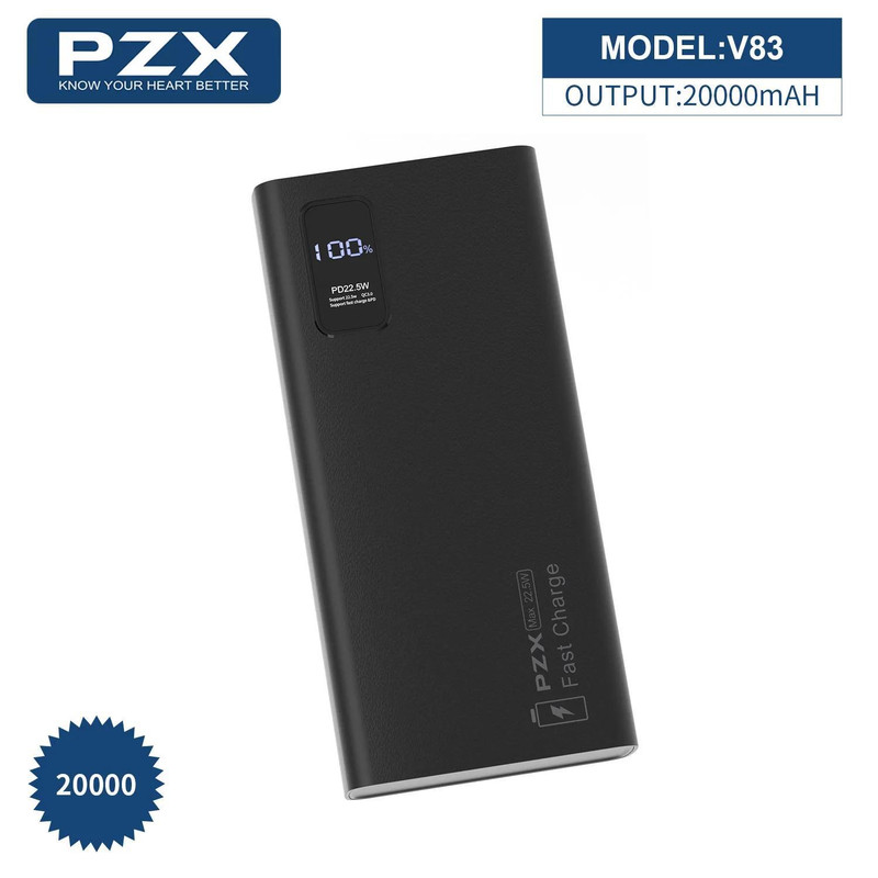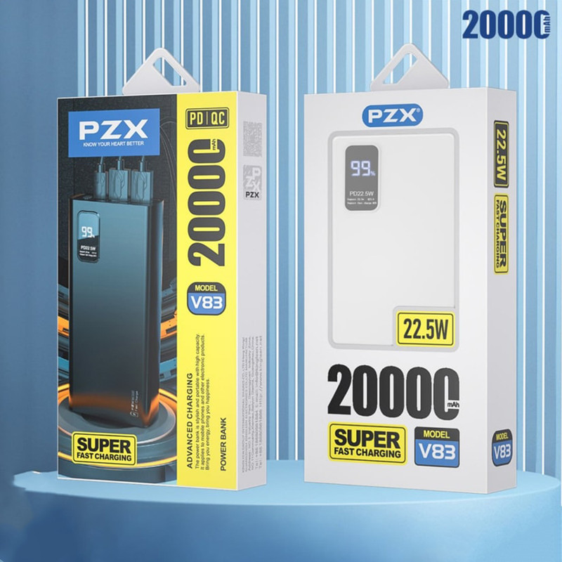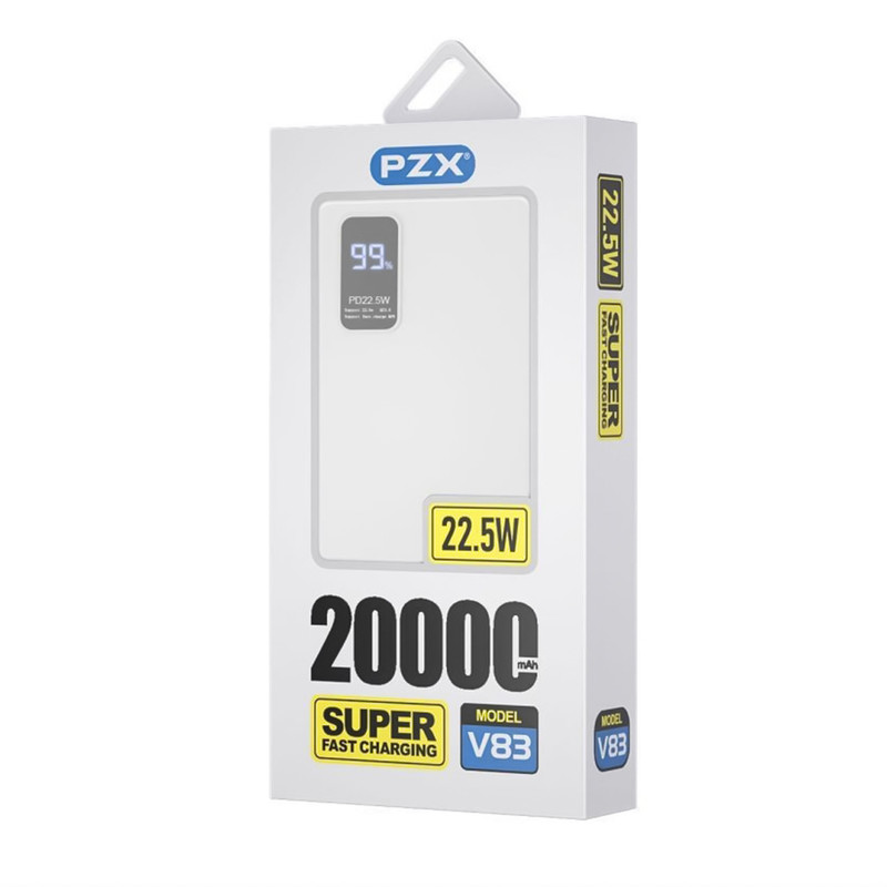 پاوربانک پی زد ایکس مدل V83 Fast Charge 22.5W ظرفیت 20000 میلی آمپر ساعت