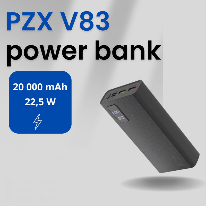 پاوربانک پی زد ایکس مدل V83 Fast Charge 22.5W ظرفیت 20000 میلی آمپر ساعت